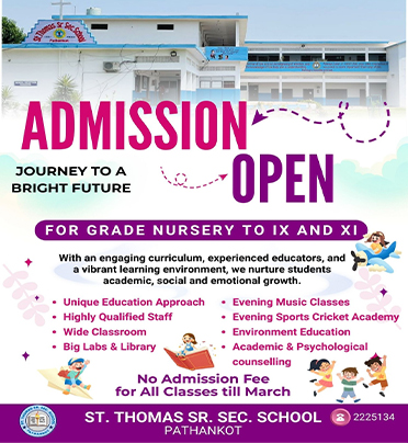 We at St. Thomas Sr. Sec. School C.B.S.E Pathankot under the benign blessings of Almighty God lay emphasis not only on academic knowledge but also develop individual personality of students. And as good learners and citizens they can assimilate with other members of the society. Our educators not only provide guidance to the students but also create an environment which facilitates self-learning and growth.