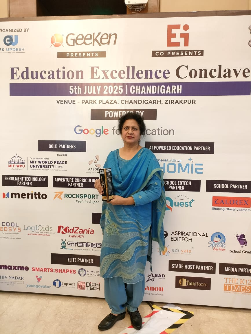 PRINCIPAL MS. ROMILA CHAND HONOURED WITH RABINDRANATH TAGORE NATIONAL AWARD AT EDUCATION EXCELLENCE CONCLAVE.